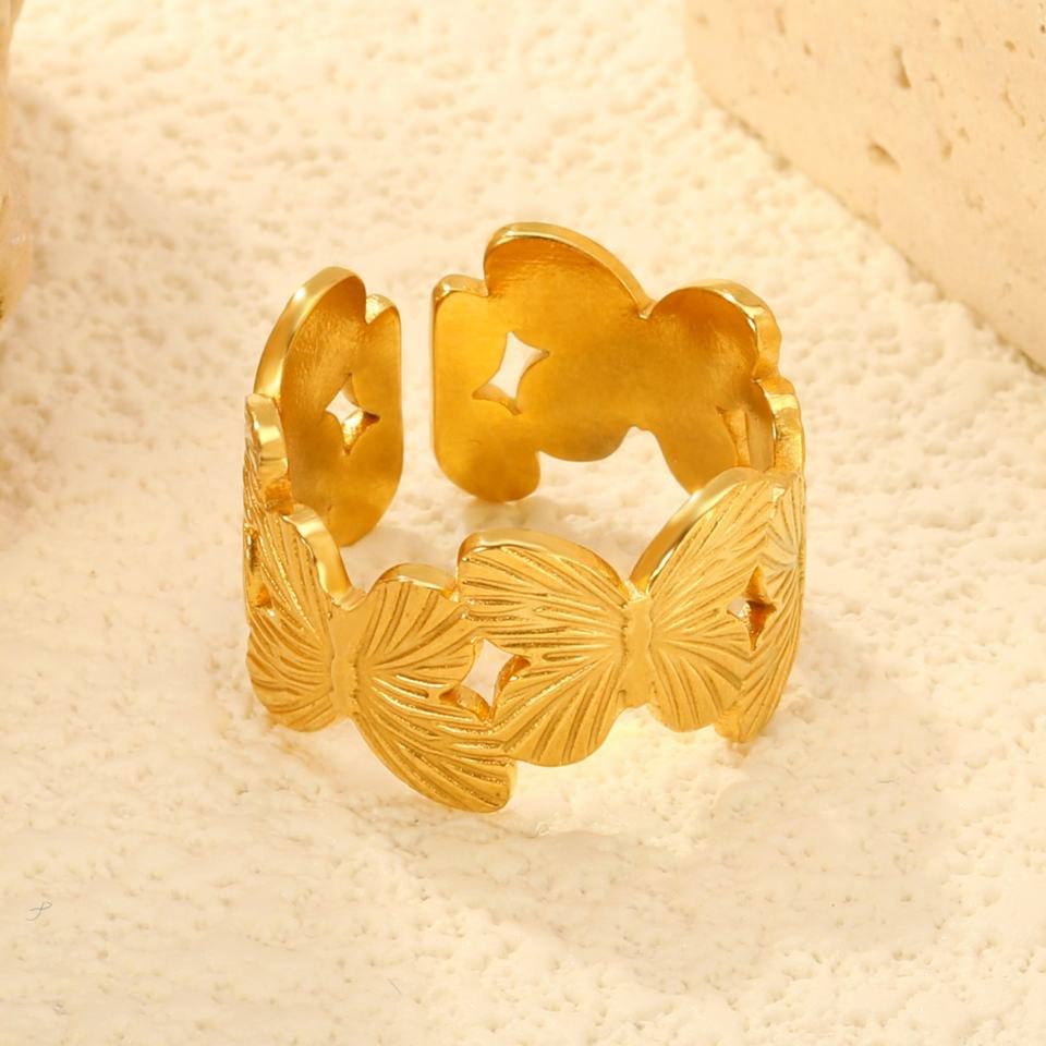 Anillo de Mariposa Apilable de Alta Calidad, Acero Inoxidable, Chapado en Oro de 18K, Resistente al Agua, Anillos Ajustables para Mujer