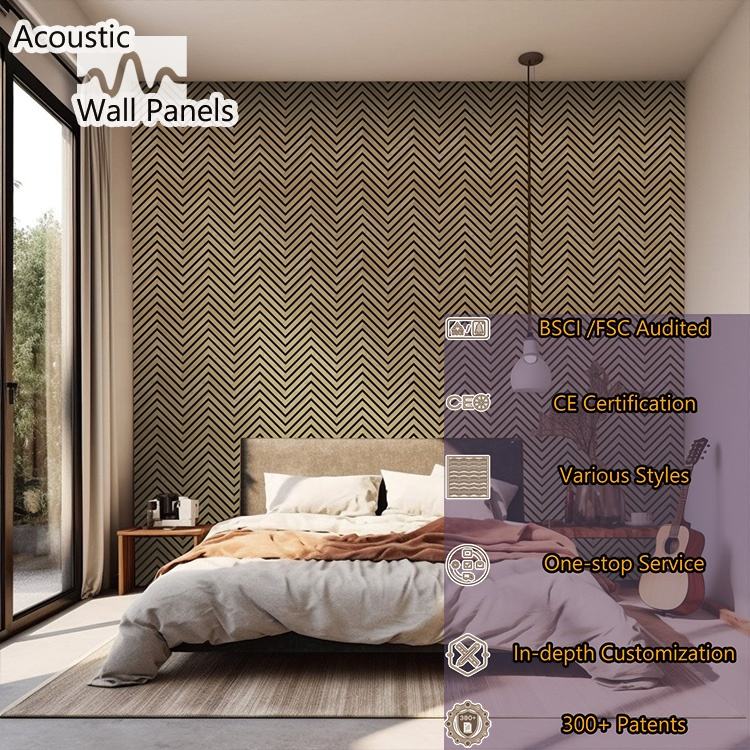 Panel acústico de melamina de placa absorbente de listones de madera de fibra de poliéster MDF Akupanel ignífugo de alta calidad con 21MM de espesor