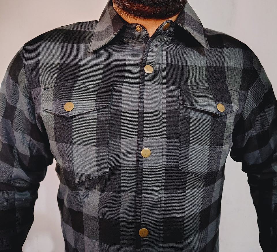 Chaqueta de franela de algodón de alta calidad para hombre, chaqueta de carreras de motos y autos, diseño personalizado, bolsillo frontal, protección a presión, ropa gris y negra