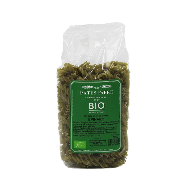 Ingredientes:Sémola de trigo duro orgánico Premium, espinacas