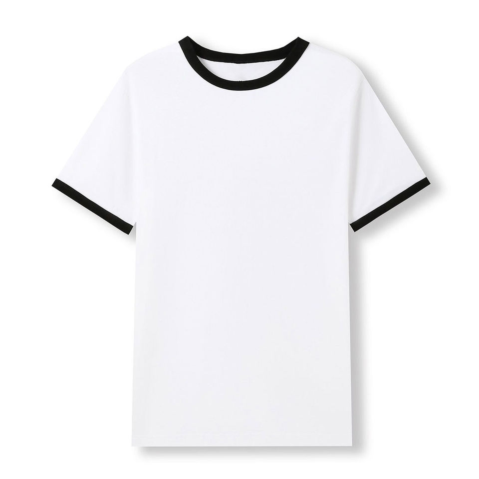 Camiseta Ringer de Alta Calidad con Logotipo Frontal, Cuello Redondo, Manga Corta, Corte Regular, 220 Gramos, 100% Algodón, Antiencogimiento, Unisex para Hombre