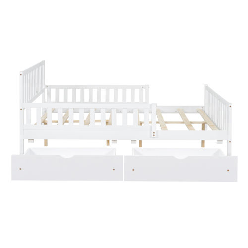 Cama Moderna de Plataforma de Madera Maciza de Alta Calidad con Barandas a Ambos Lados y Dos Cajones de Almacenamiento