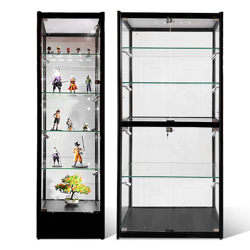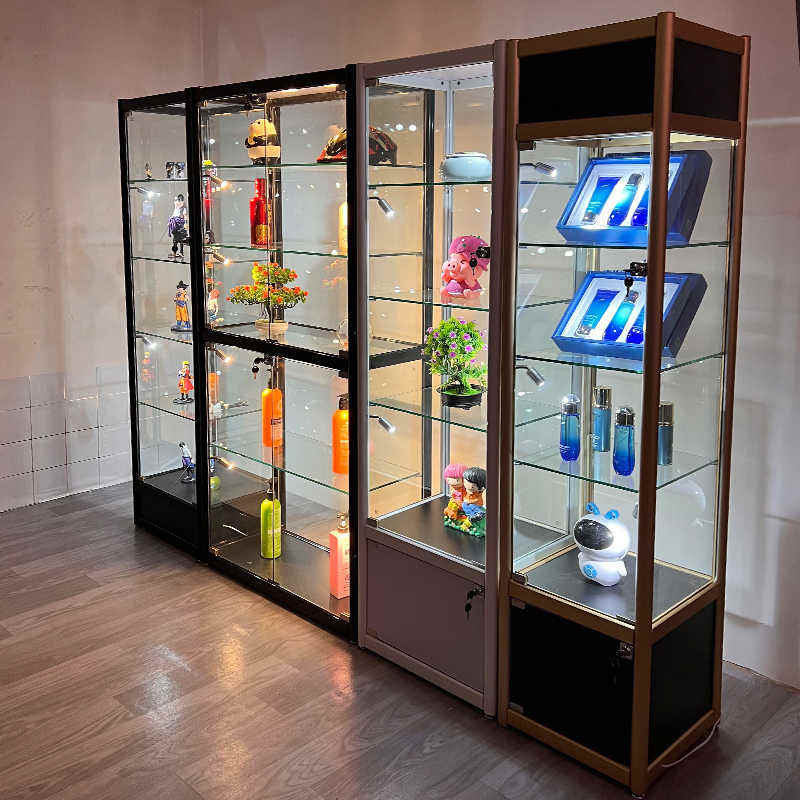 Vitrina de joyería con marco de aluminio de luz LED de visión completa de alta calidad, vitrina de exhibición, vitrina para tienda minorista, vitrina de vidrio