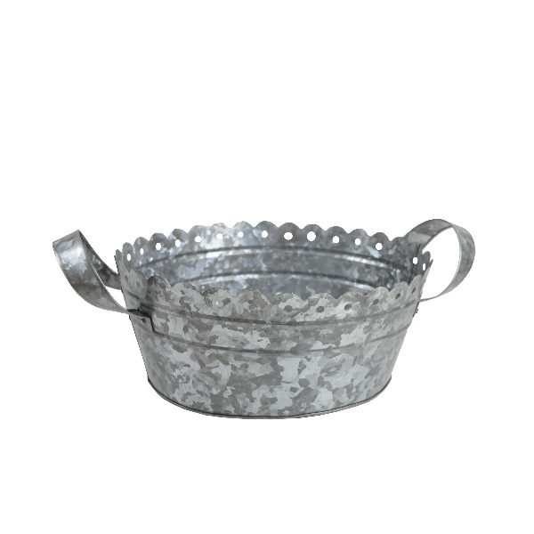 Cubo de maceta de flores galvanizado de alta calidad con mango de metal redondo y borde de esquina de red acabado esmaltado directamente exportado