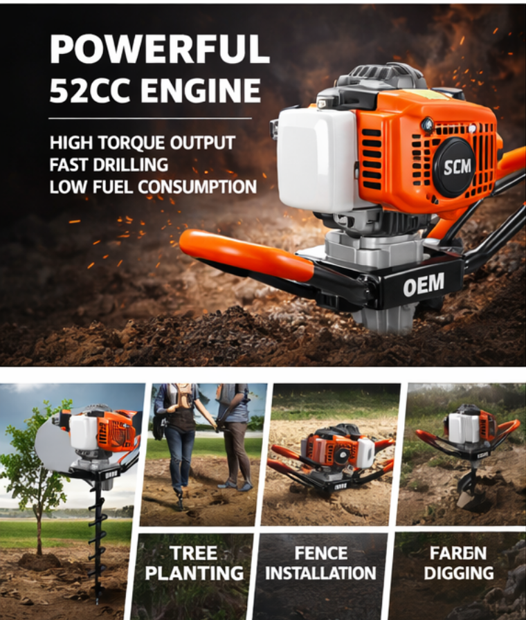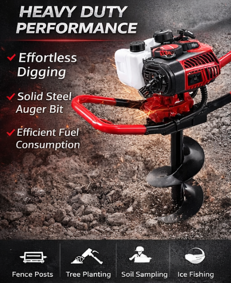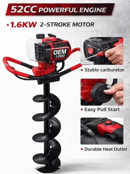 Taladro de Tierra a Gasolina de Alta Calidad para Jardín, Perforación de Agujeros, Rompehielos para Pesca en Agua, Tres Brocas, 1 Año de Garantía