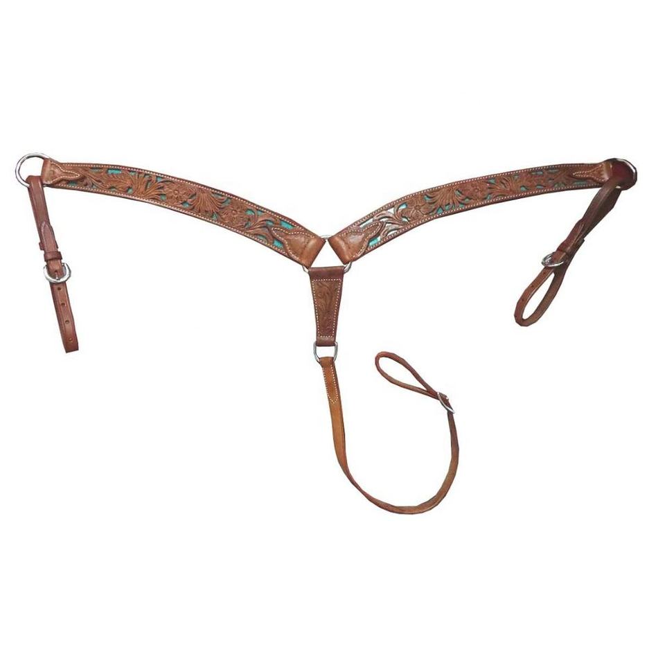 Pechera Ecuestre Occidental de Alta Calidad, Modelo 192, de Cuero Brillante Tallado con Acero Inoxidable, Marca Rider's Trust