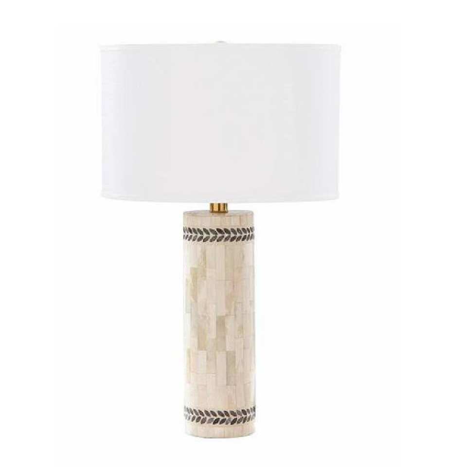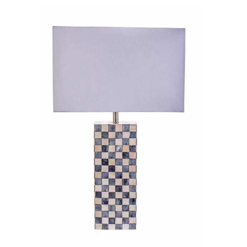 Lámpara de mesa con incrustaciones de hueso gris y blanco con patrón Floral de formas geométricas de alta calidad, lámpara de mesa decorativa, artesanías de hueso
