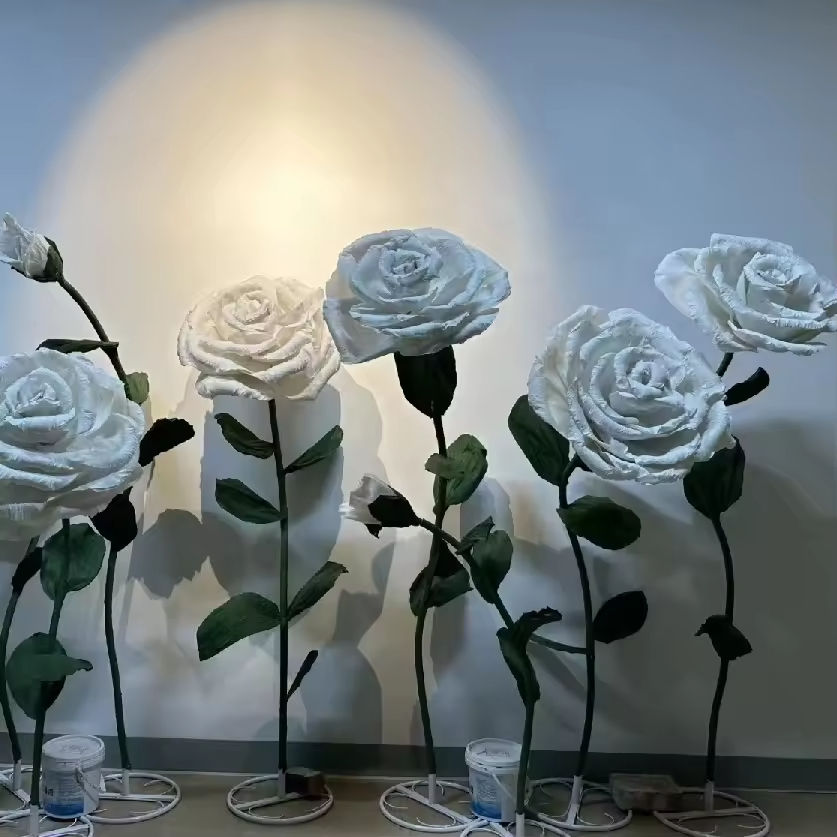 Nombre del producto:Papel gigante blanco rosa flores conjunto boda flor artificial