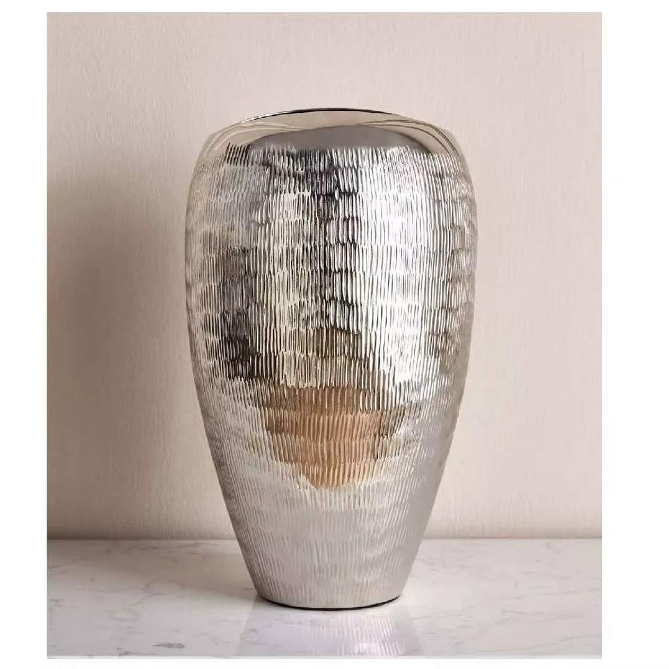 Florero de suelo Extra grande con textura de Metal dorado de alta calidad, florero decorativo moderno, Ideal para decoración de oficina en casa o sala de estar