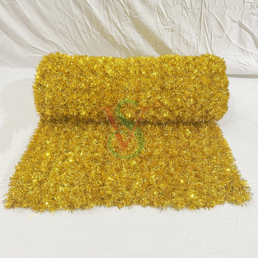 Nombre del producto:Guirnalda de red de PET/PVC, oropel, alfombra de césped para decoración de motivos navideños