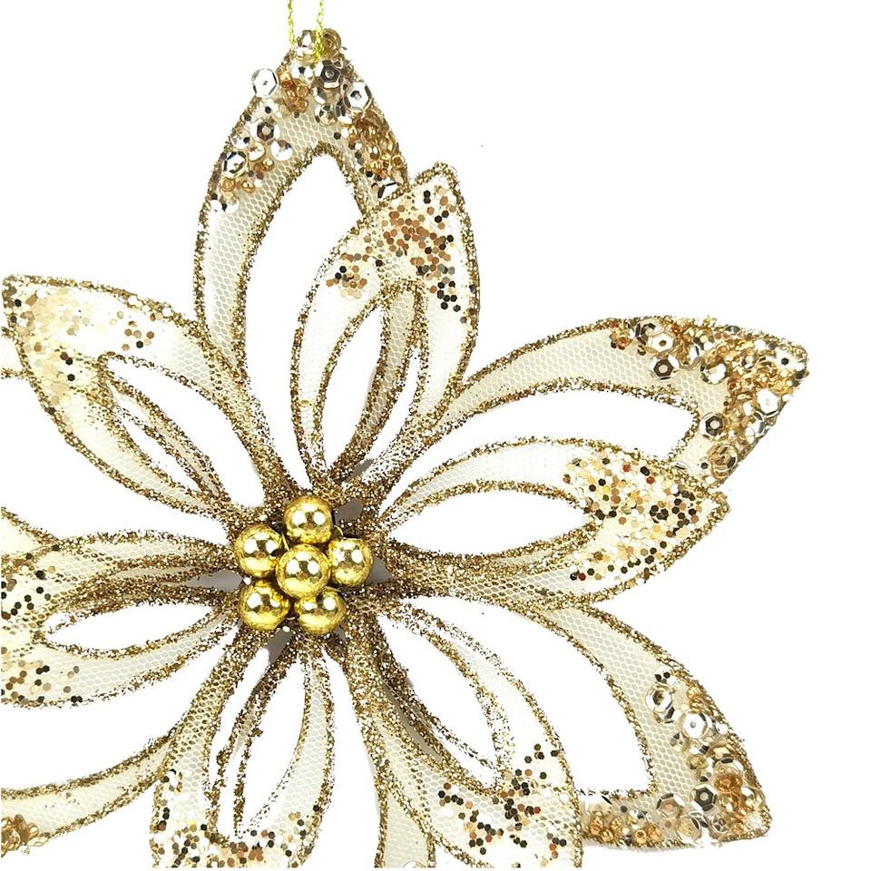 Nombre del producto:14cm Astilla Poinsettia ornamento