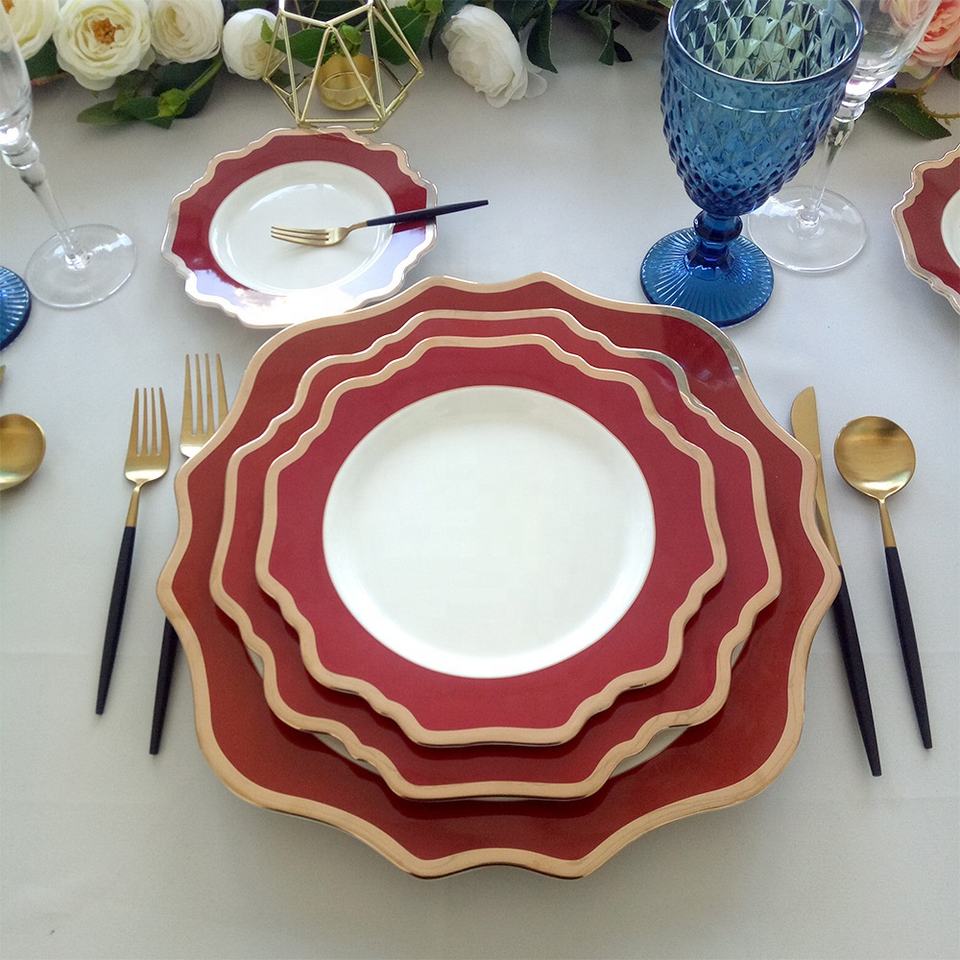 Juego de vajilla de boda de lujo con borde dorado de alta calidad, juego de platos de cerámica de girasol de China de hueso para fiesta