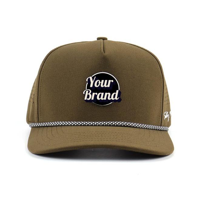 Sombrero de golf de alta calidad OEM ODM Venta al por mayor Gorra de béisbol impermeable de 5 paneles Parche bordado personalizado y agujero cortado con láser para hombres y mujeres