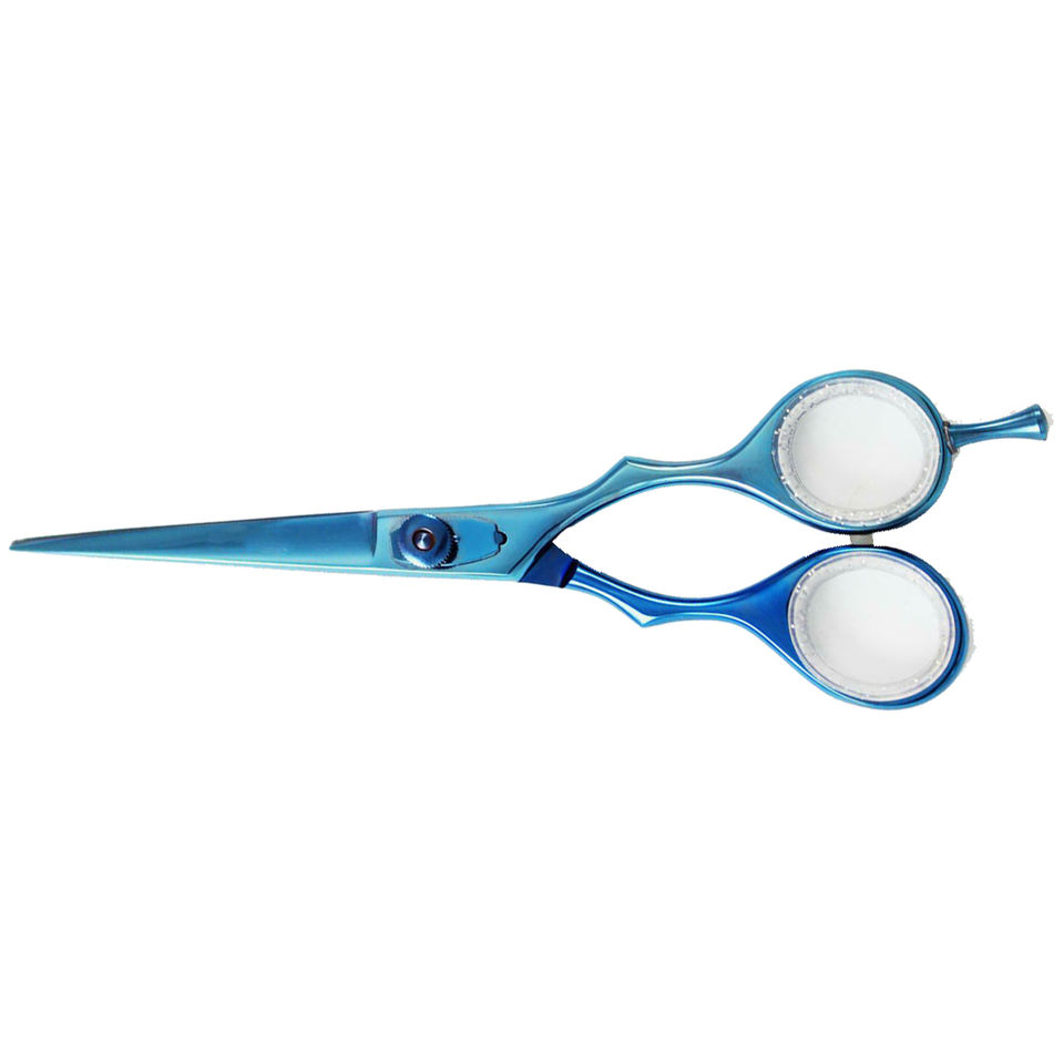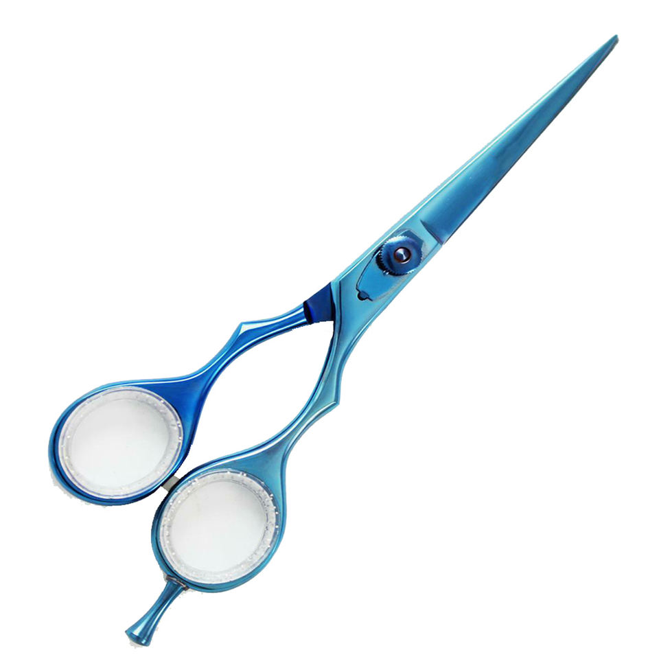 Tijera de corte de pelo de alta calidad, tijera recubierta de Titanio azul, tijera de salón de acero inoxidable con anillo de goma elegante