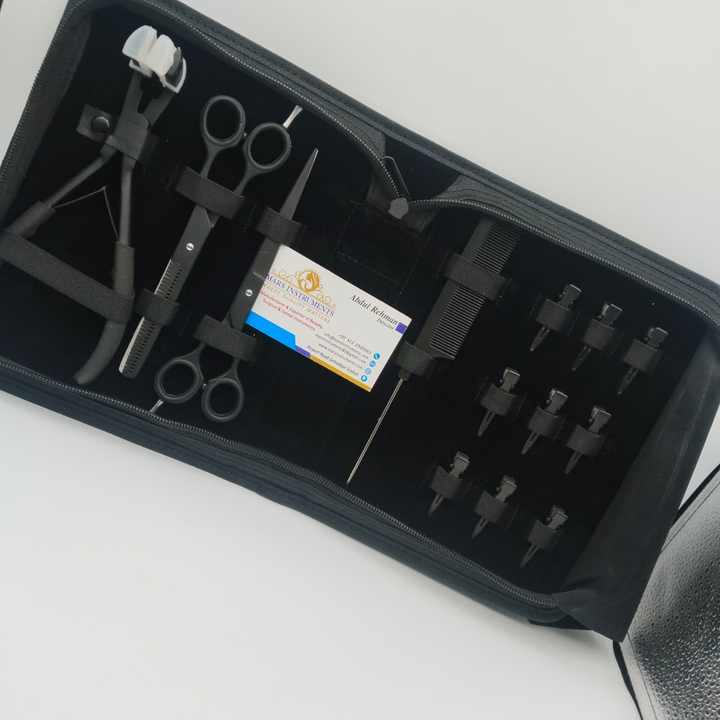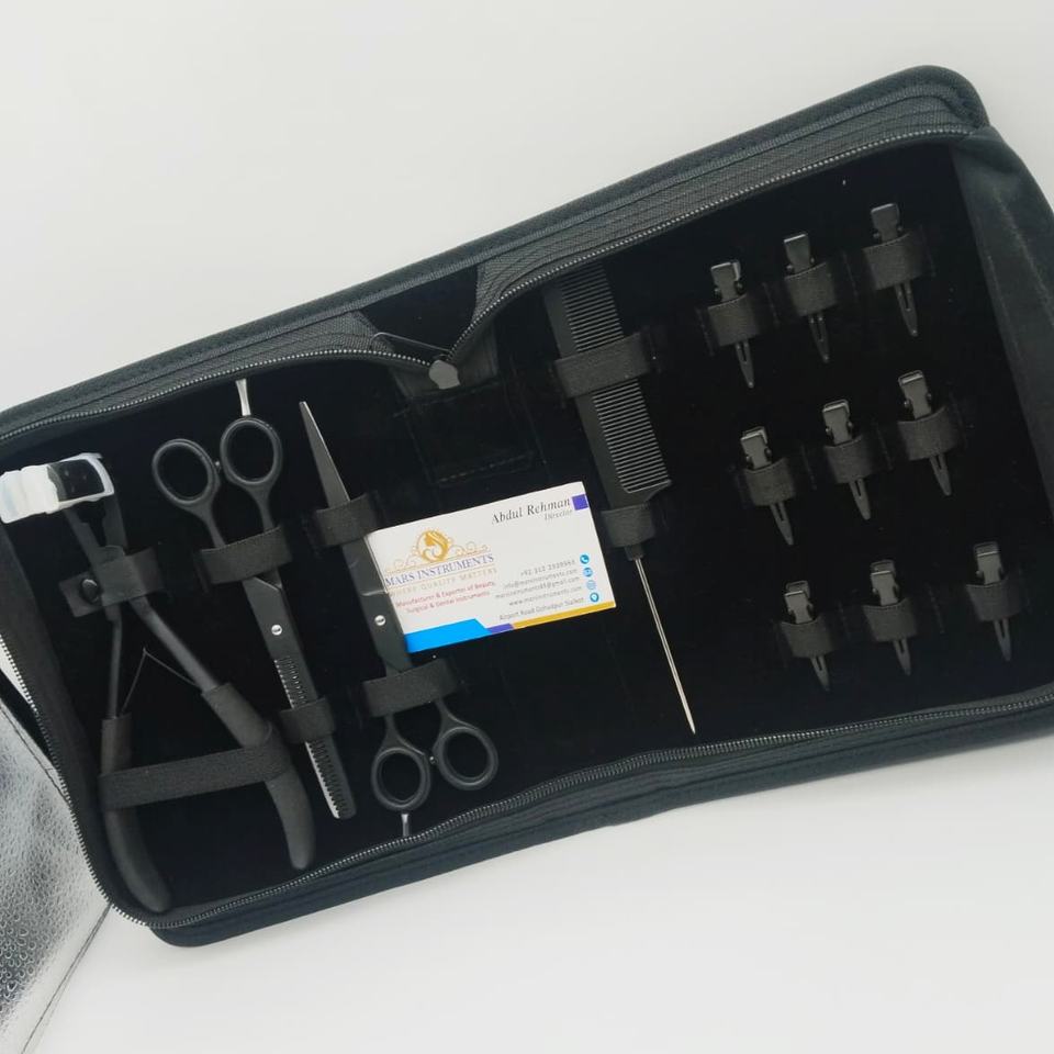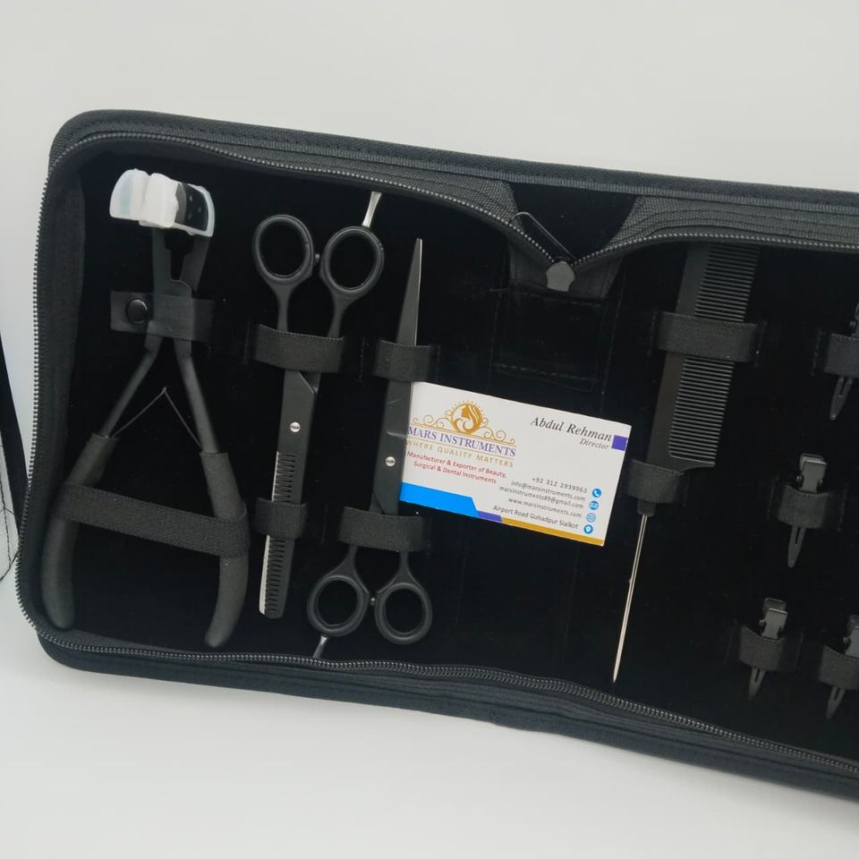 Tijeras de Alta Calidad para Extensiones de Cabello, Color Negro, con Pinzas Prolongadas, Pinzas de Presión para Cinta Adhesiva y Peine