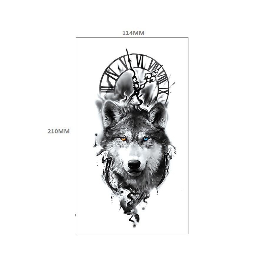 Tatuaje Temporal de Alta Calidad para Medio Brazo, Diseño de Calavera de Lobo, Personalidad, Impermeable, Negro, para Adultos