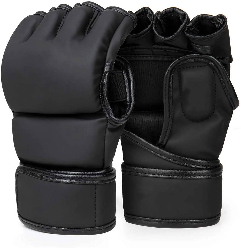 Guantes MMA de medio Dedo de alta calidad, venta al por mayor, cuero profesional y logotipo personalizado de PU para entrenamiento de lucha y boxeo