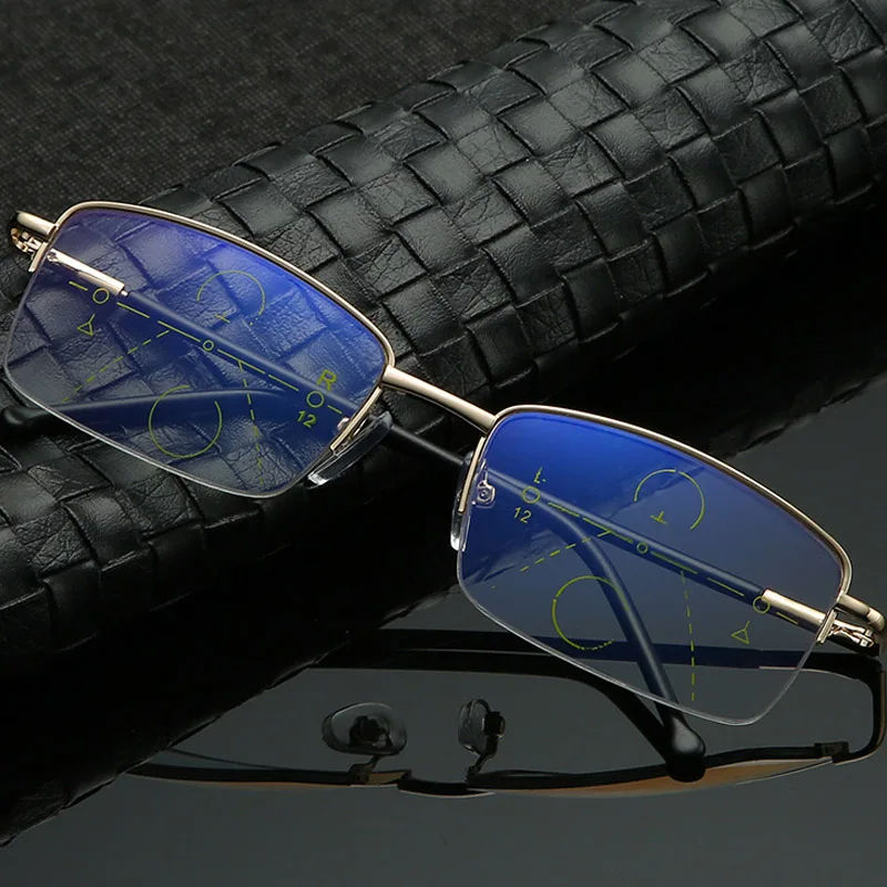 Gafas de lectura progresivas de medio Marco de alta calidad, multifocales para hombres y mujeres, gafas de presbicia con aumento de luz azul