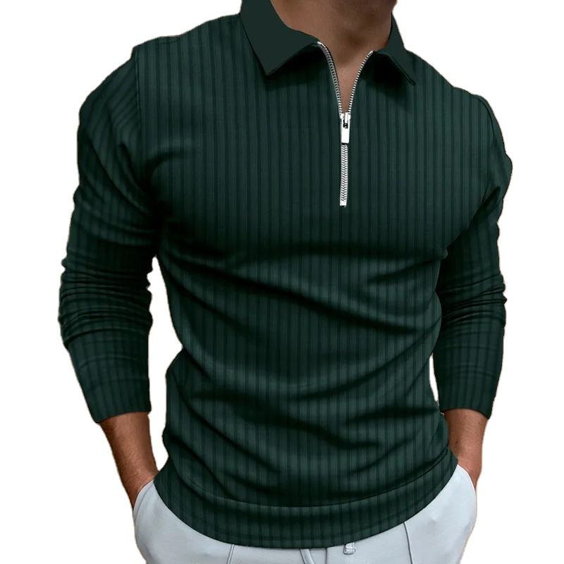 Polo de Hombre de Alta Calidad con Media Cremallera, Cuello, Rayas, Mangas Largas y Cremallera