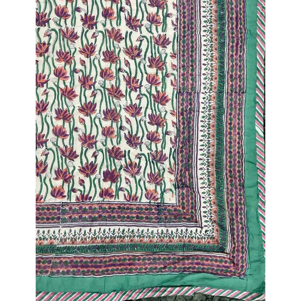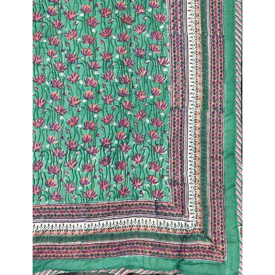 Colcha de Algodón Estampada a Mano de Alta Calidad, Colcha Kantha Hecha a Mano para el Hogar, Diseño Floral de Patchwork para Verano e Invierno
