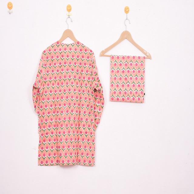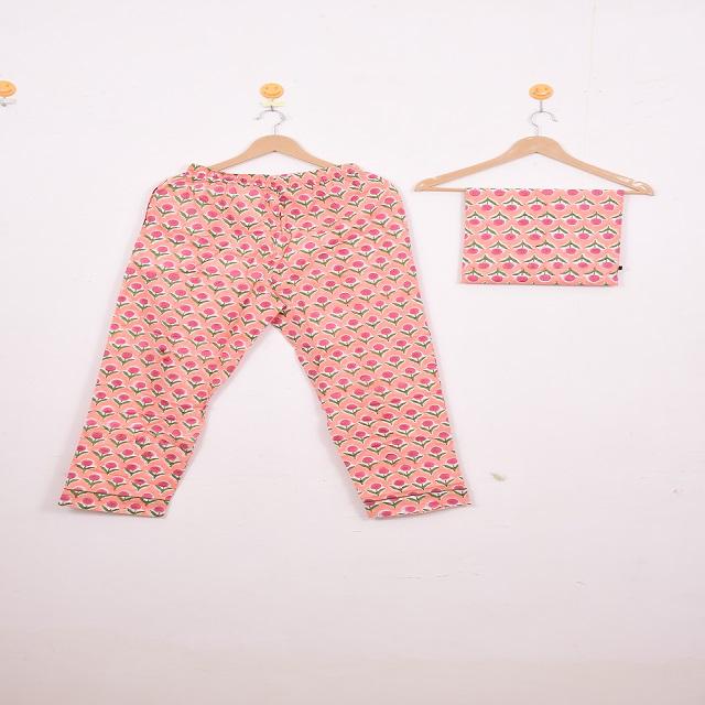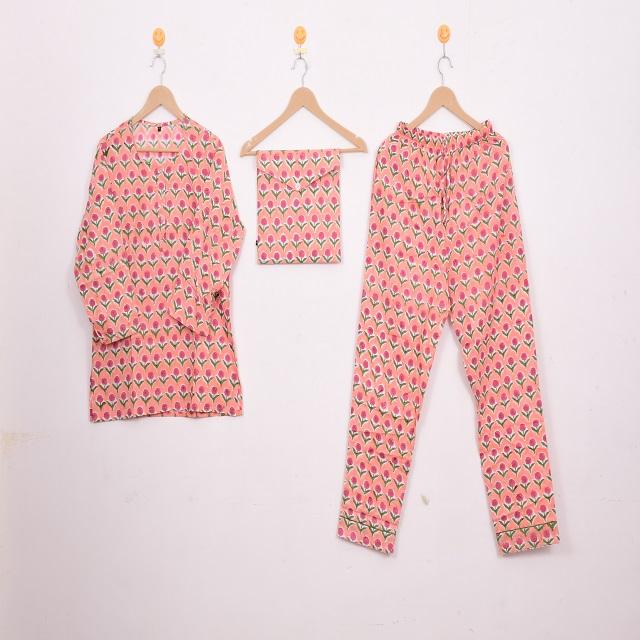 Conjunto de Pijama Floral Estampado a Mano de Alta Calidad - Ropa de Dormir de Algodón, Ropa de Dormir y de Estar por Casa de Verano Estilo Bohemio para Mujer, Regalo