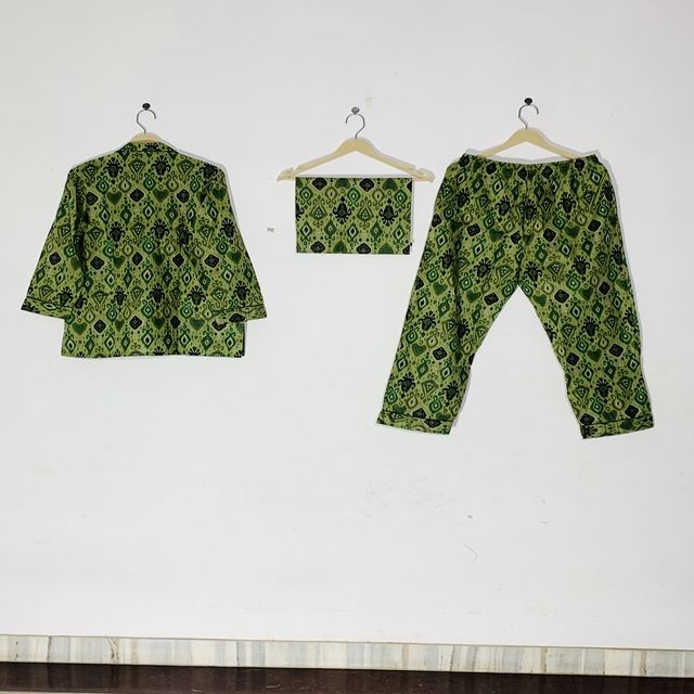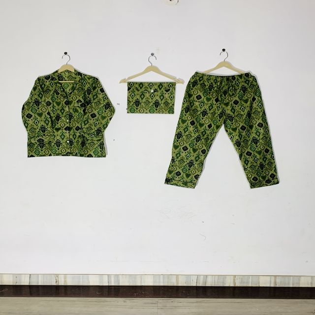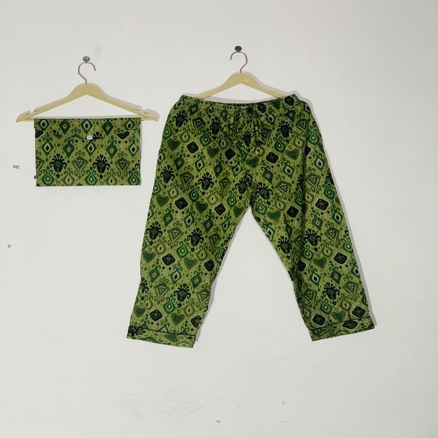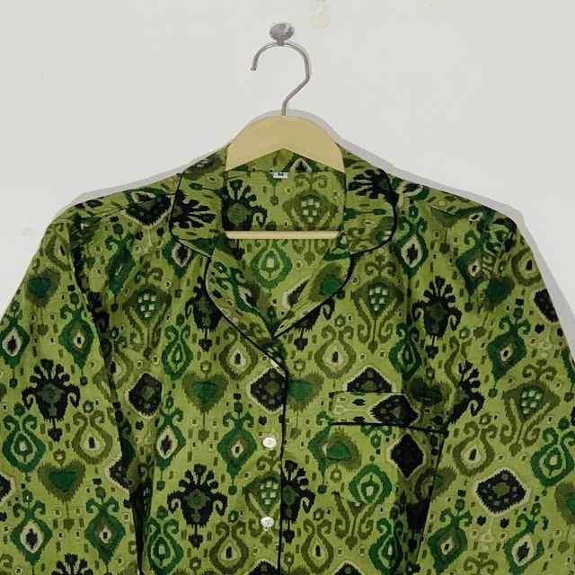 Conjunto de Pijama Floral Estampado a Mano de Alta Calidad - Ropa de Dormir de Algodón, Ropa de Dormir y de Estar por Casa de Verano Estilo Bohemio para Mujer, Regalo