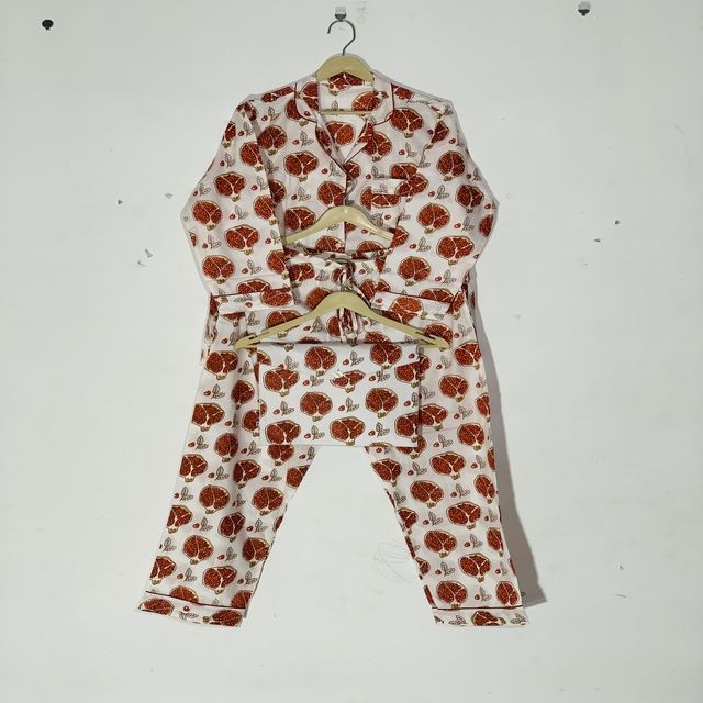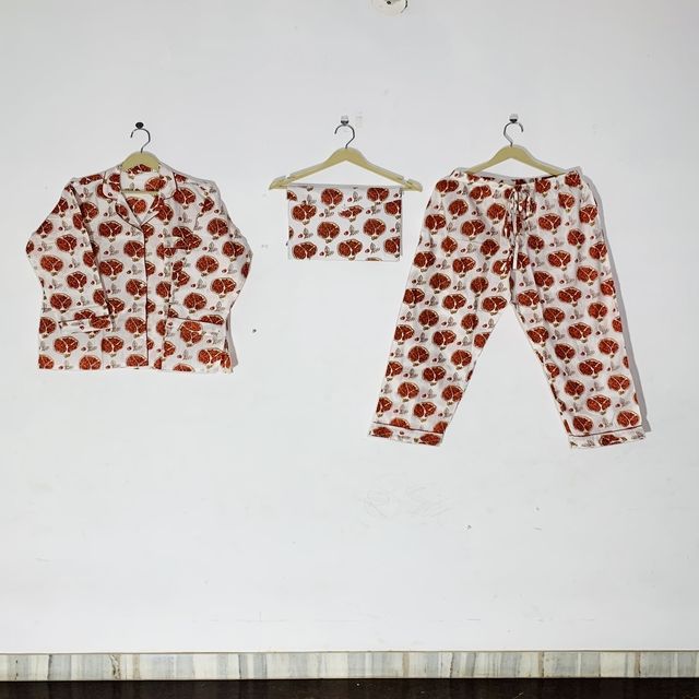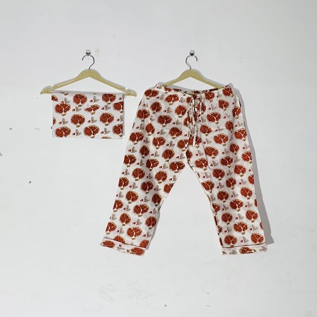 Conjunto de Pijama Floral Estampado a Mano de Alta Calidad - Ropa de Dormir Artesanal de Algodón, Ropa de Verano para Mujer y Regalo de Loungewear