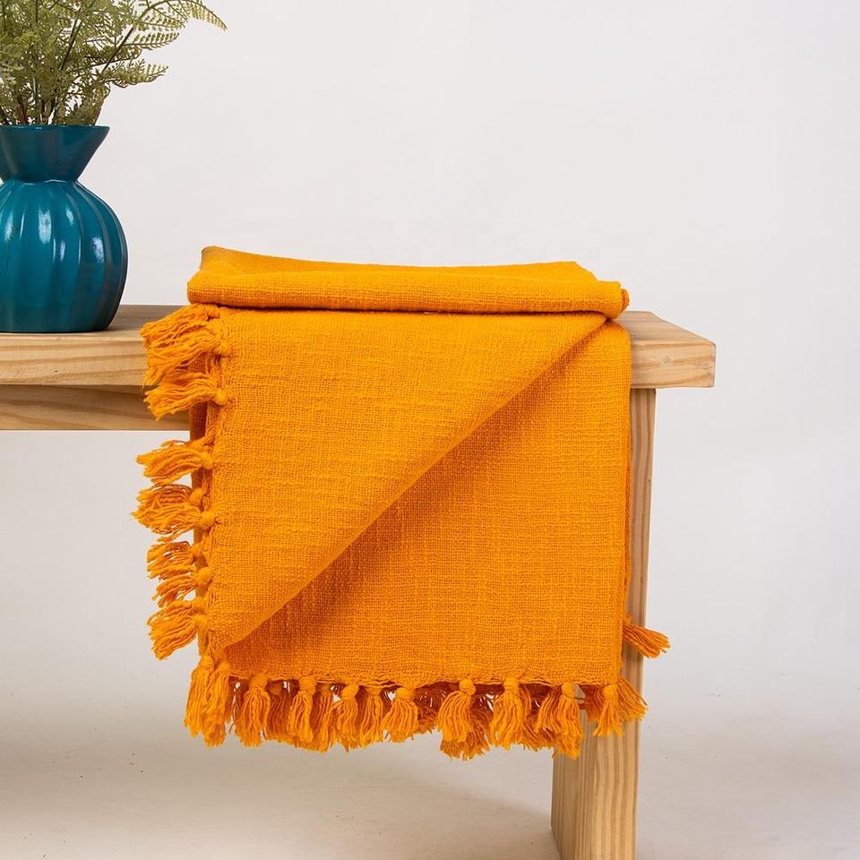 Manta de sofá de algodón puro sólido amarillo de bloque de mano de alta calidad marrón suave y ligero para decoración del hogar