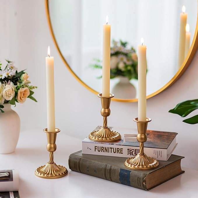 Candelabro de Metal de Latón Hecho a Mano de Alta Calidad con Relieve, Acabado en Dorado, Decoración para Bodas y Navidad