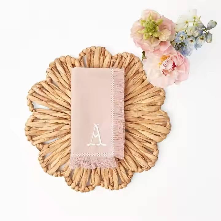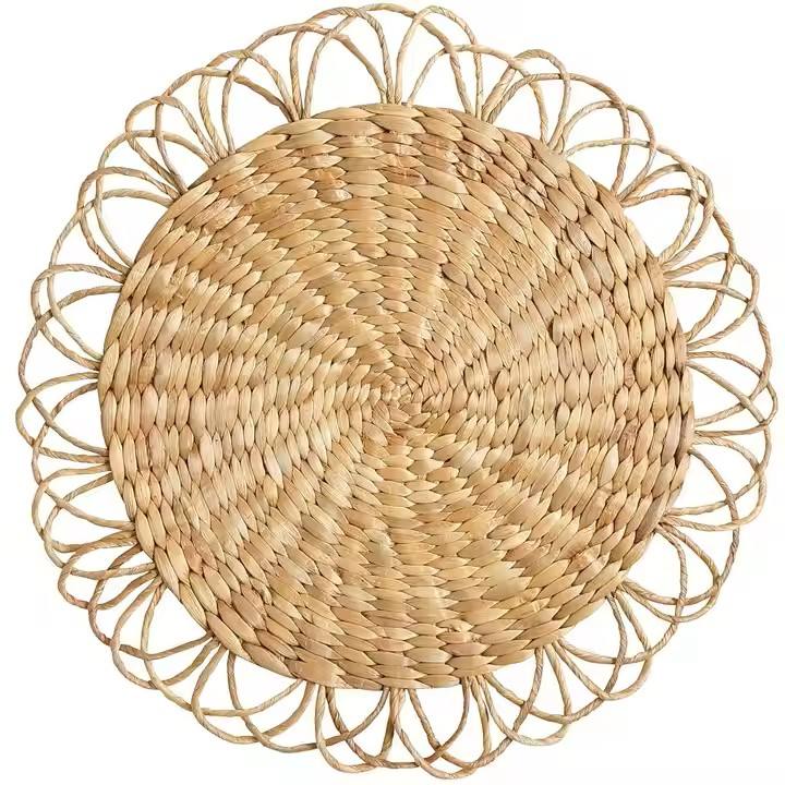Manteles individuales redondos de algas marinas hechos a mano de alta calidad, juego de mesa tejido Florish de esteras y almohadillas de jacinto de agua de Vietnam