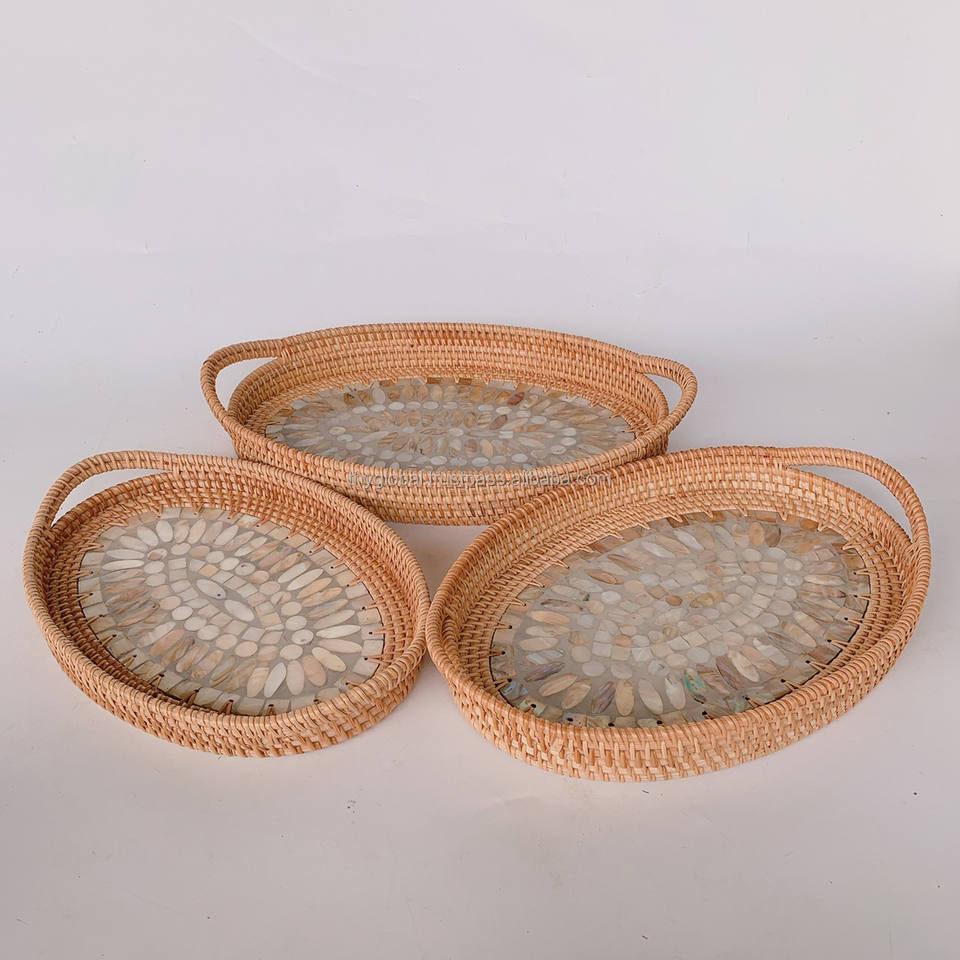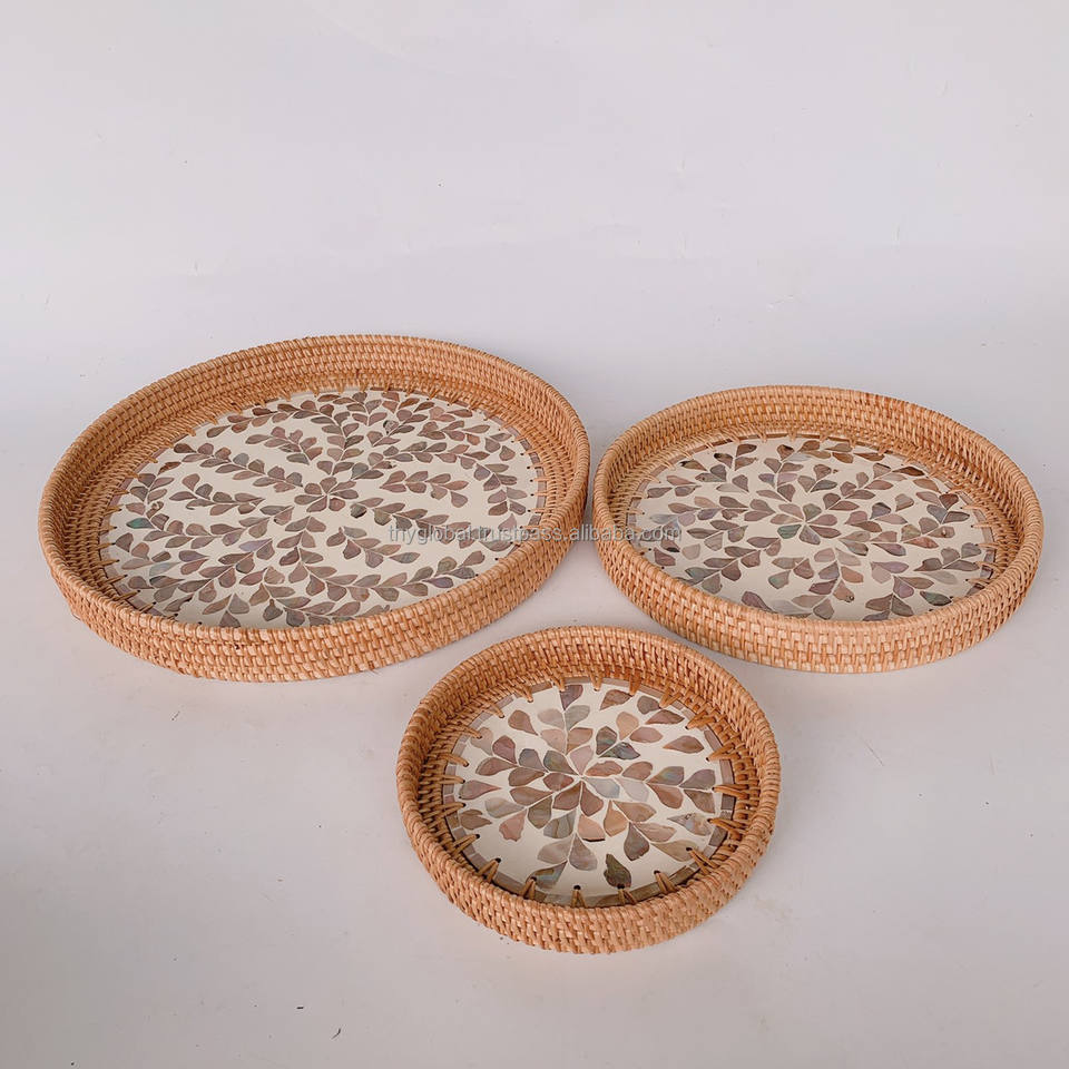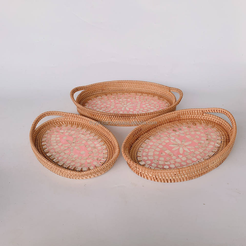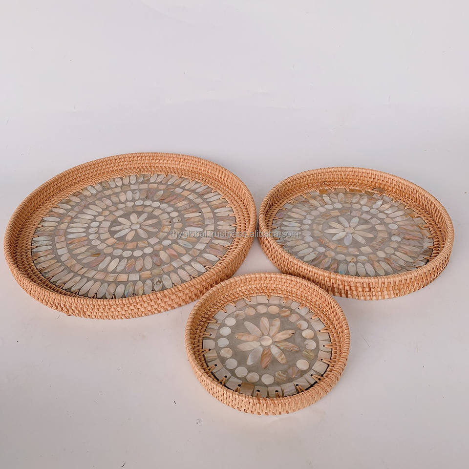 Palabra clave:Madre de perla bandeja con rattan borde precio barato