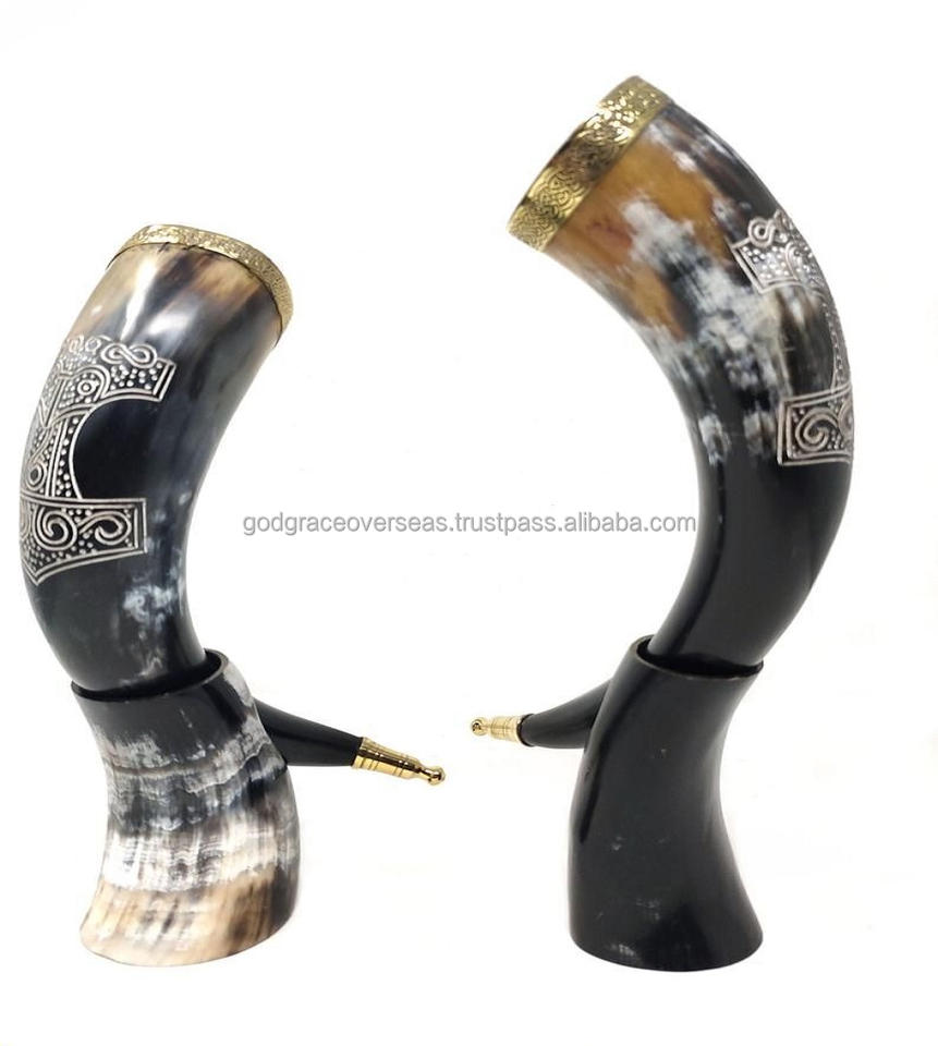 Taza de cuerno vikingo con soporte, taza de cuerno para beber Vikingo, taza de jarra hecha a mano, taza de cuerno para beber cerveza para hidromiel 12oz
