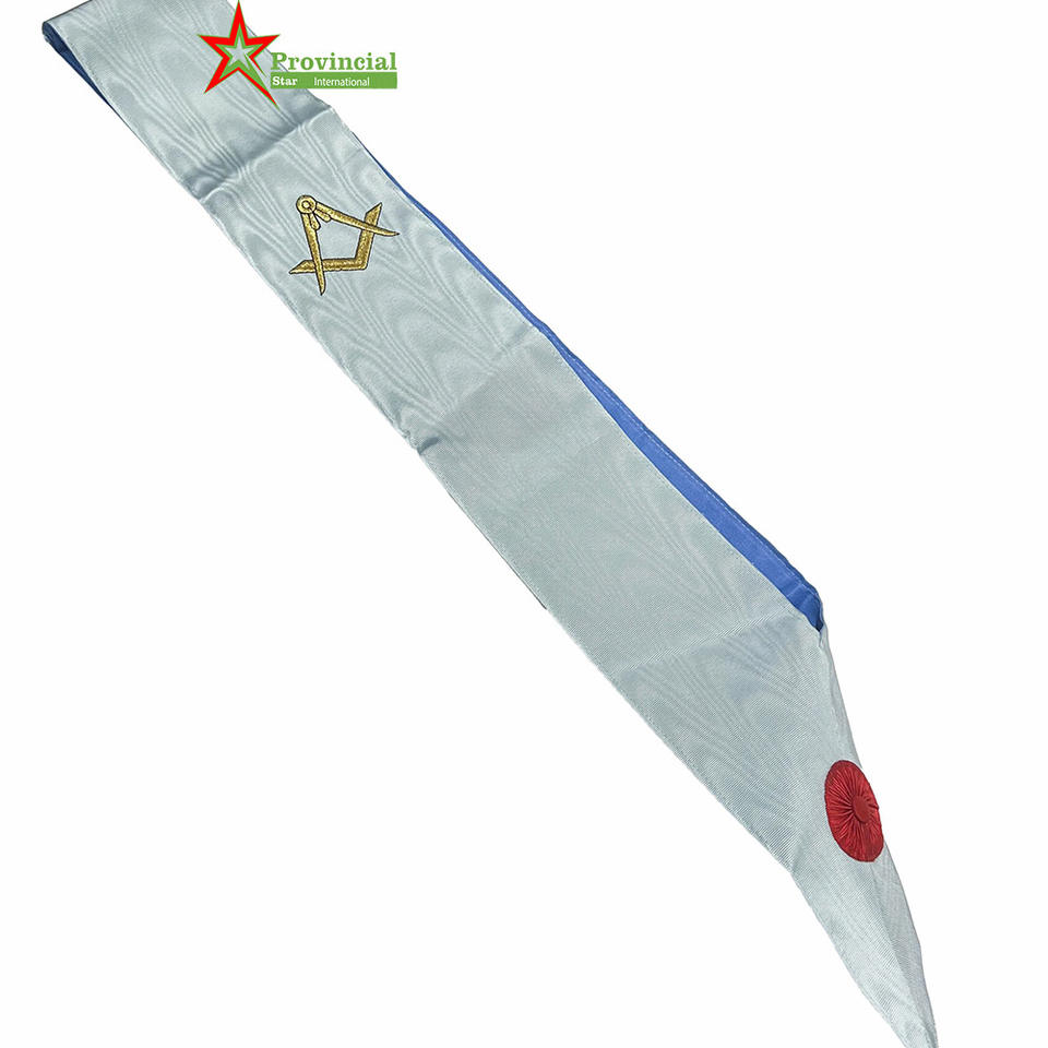 Alta calidad hecho a mano de cuero Artificial Masonic Regalia bordado Master Mason White Ribbon Sash