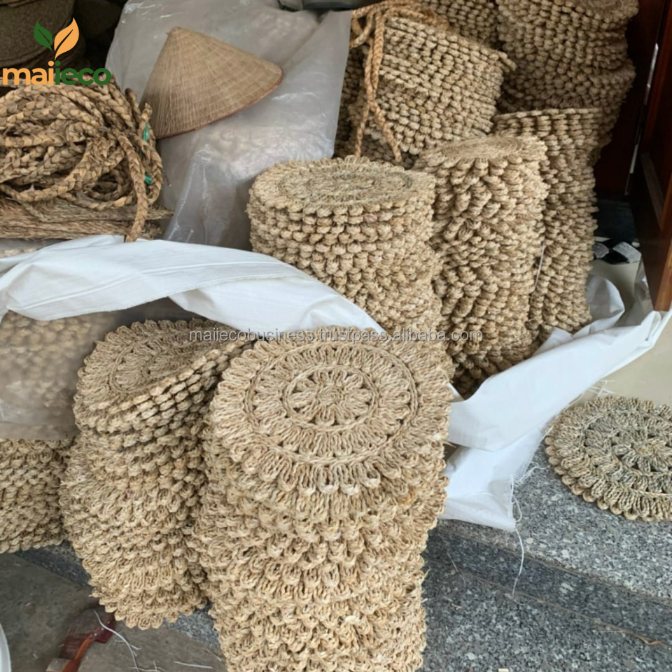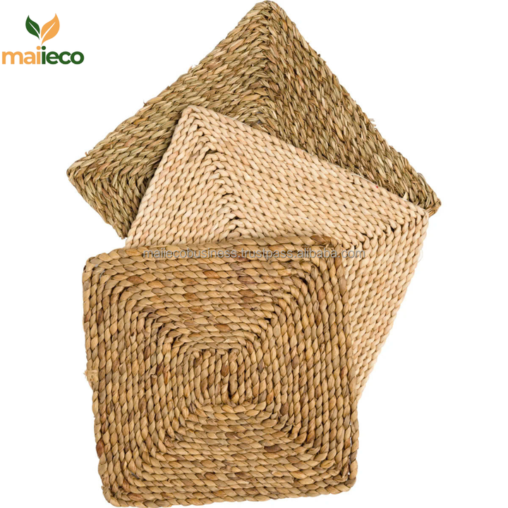 Mantel de mesa de estilo bohemio hecho a mano de alta calidad, jacinto de agua cuadrado Natural, Material de algas marinas de vidrio tejido, cartón de estilo bohemio