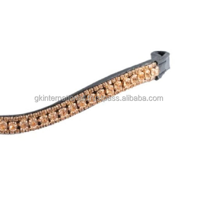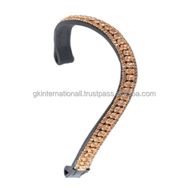 Banda de ceja de caballo de cuero de canal vacío de forma curva hecha a mano de alta calidad con cristales dorados decorativos cadena ostentosa de diamante