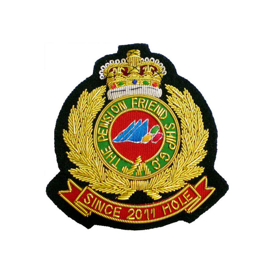 Insignias bordadas hechas a mano de alta calidad, parches bordados en relieve dorado, insignias bordadas personalizadas