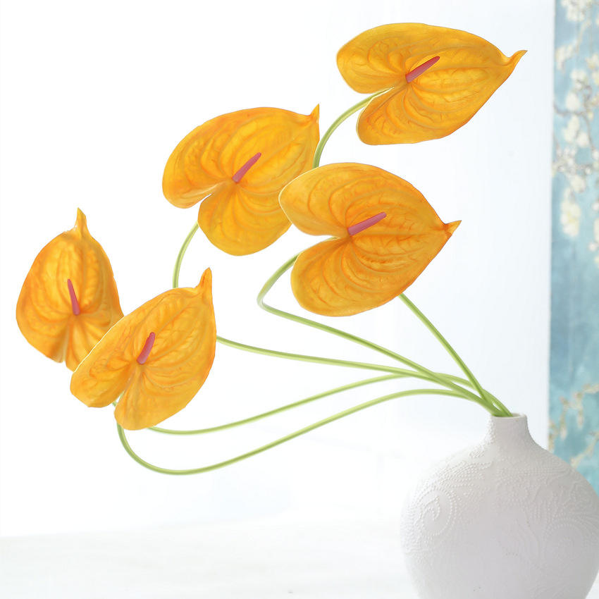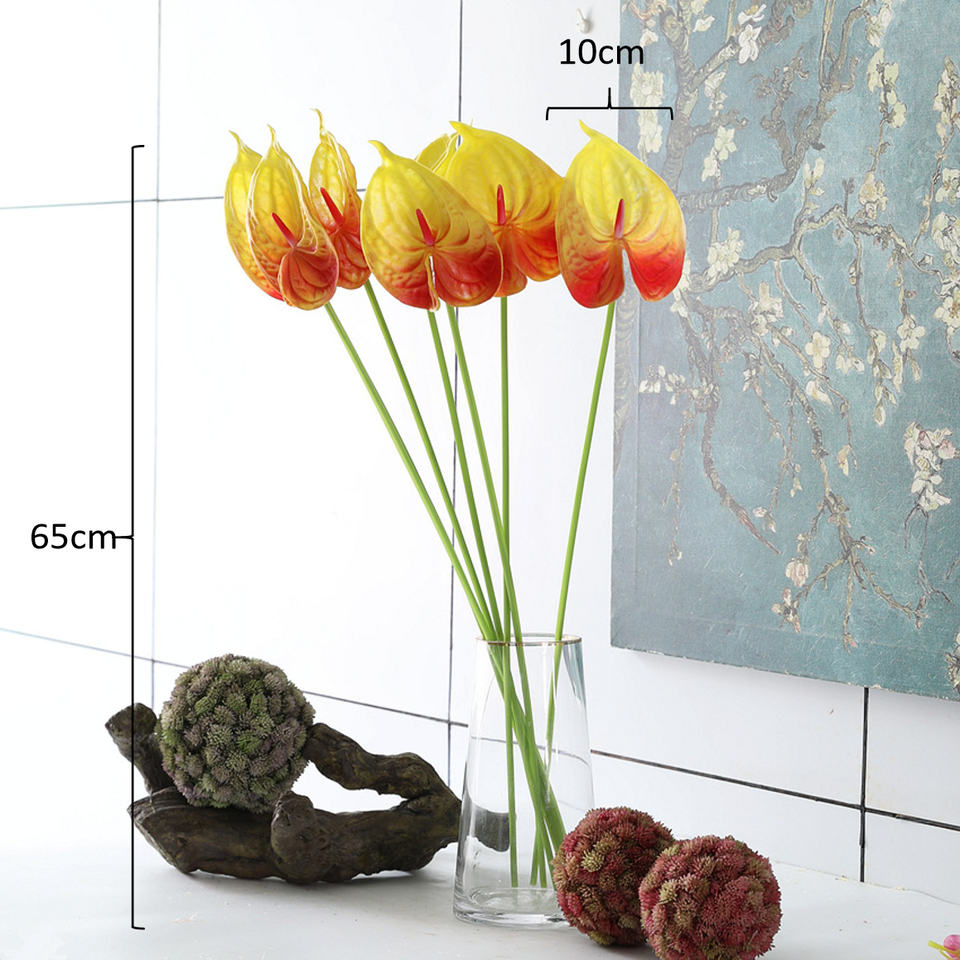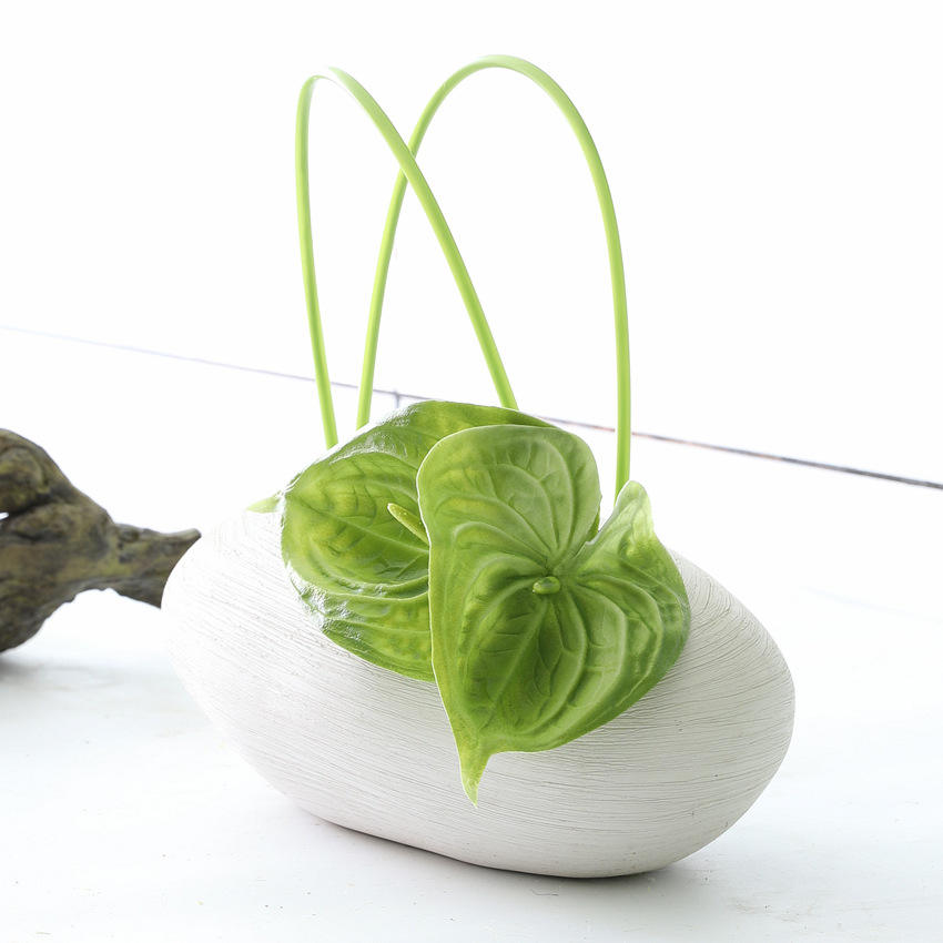 Planta Artificial de Anturio Grande, Estilo Europeo, Hecha a Mano, de Alta Calidad, Color Blanco y Verde, Tacto Realista, Centro de Mesa de PU para Bodas
