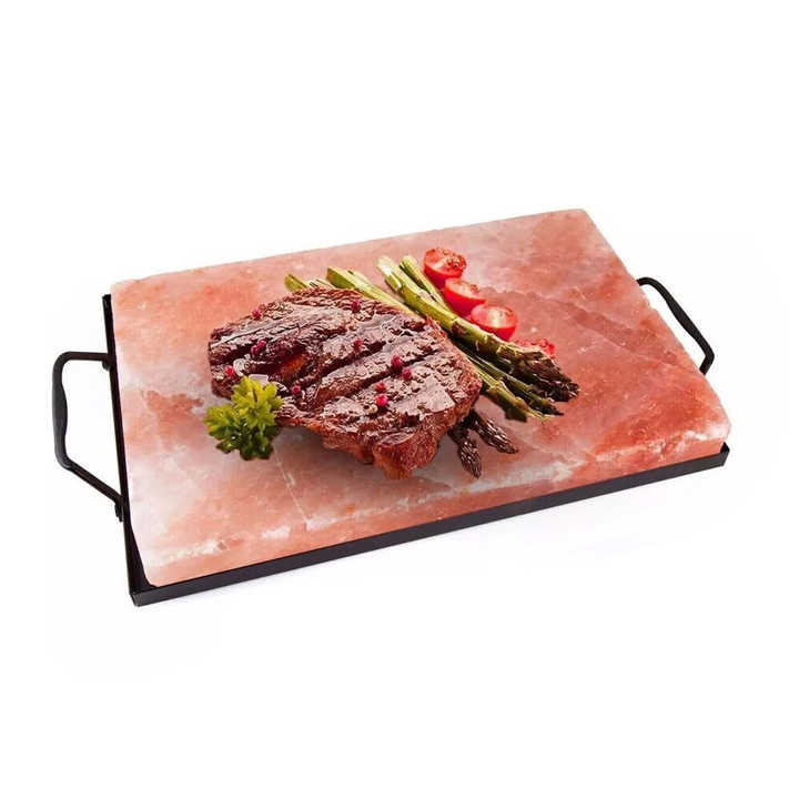 Sian Enterprises Juego de bloques de sal del Himalaya hecho a mano 12x8x2 pulgadas Soporte de placa de metal tallado de alta calidad Embalaje Artesanías naturales