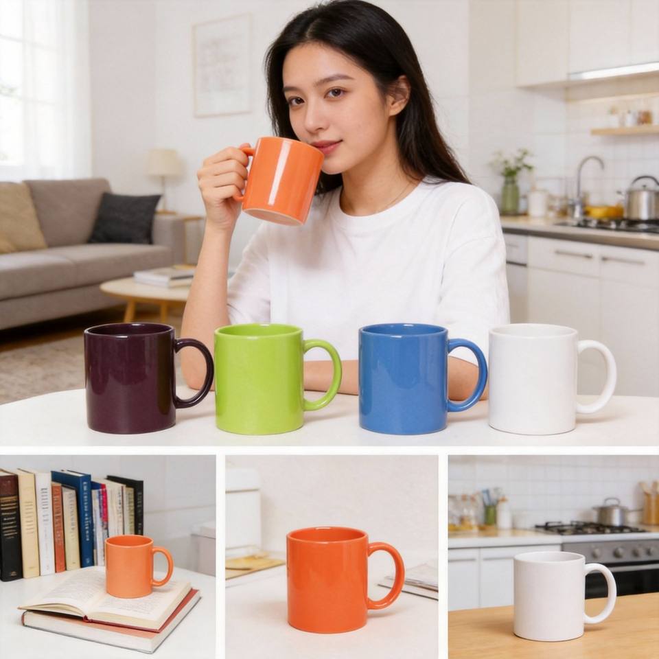 Taza de Cerámica Blanca Personalizable de Alta Calidad, Hecha a Mano, Moderna, de 11 oz/350 ml, Apta para Sublimación, con Logotipo y Patrón Personalizables, Regalos para Fiestas
