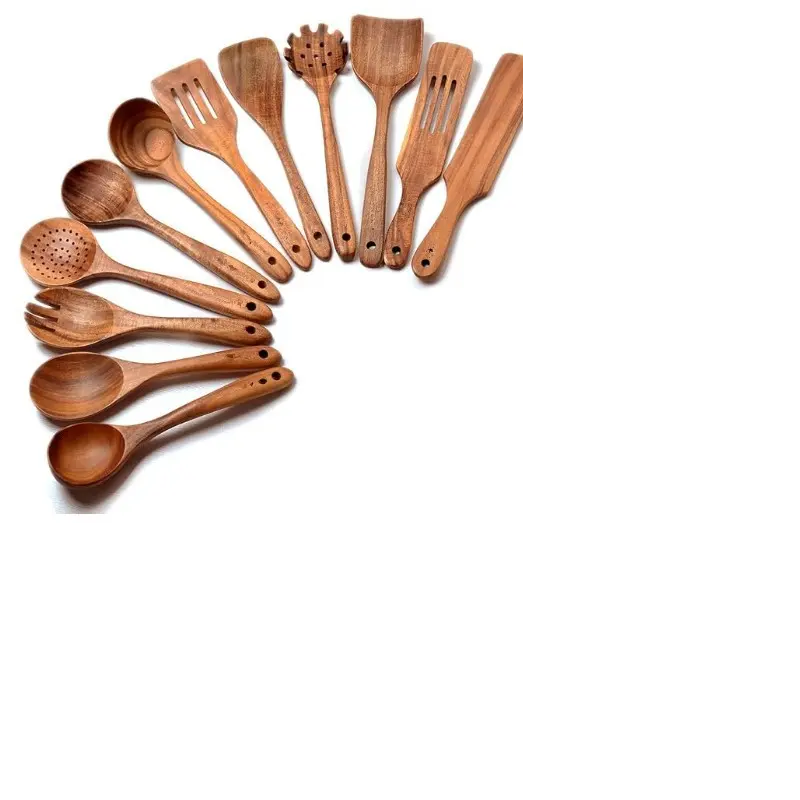 Juego de Cucharas de Madera para Servir, Hechas a Mano, Modernas, de Lujo, Ecológicas, para Camping, con Mango Largo Tipo Espejo, de Acacia, Mango o Teca de la India