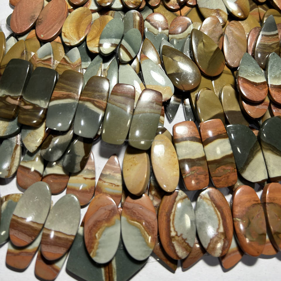 Par de cabujones de piedras preciosas de jaspe policromado Natural de poligrama hechos a mano de alta calidad para la fabricación de joyas de piedras preciosas sueltas