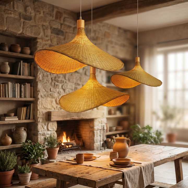Lámpara Colgante de Mimbre Rústica Moderna Estilo Granja, Hecha a Mano, para Techo, Ligera, para Hogar o Restaurante