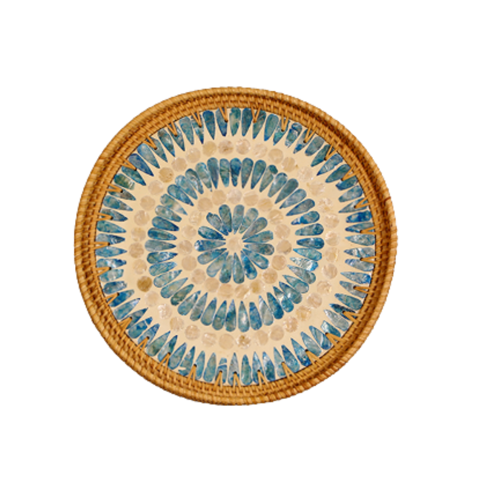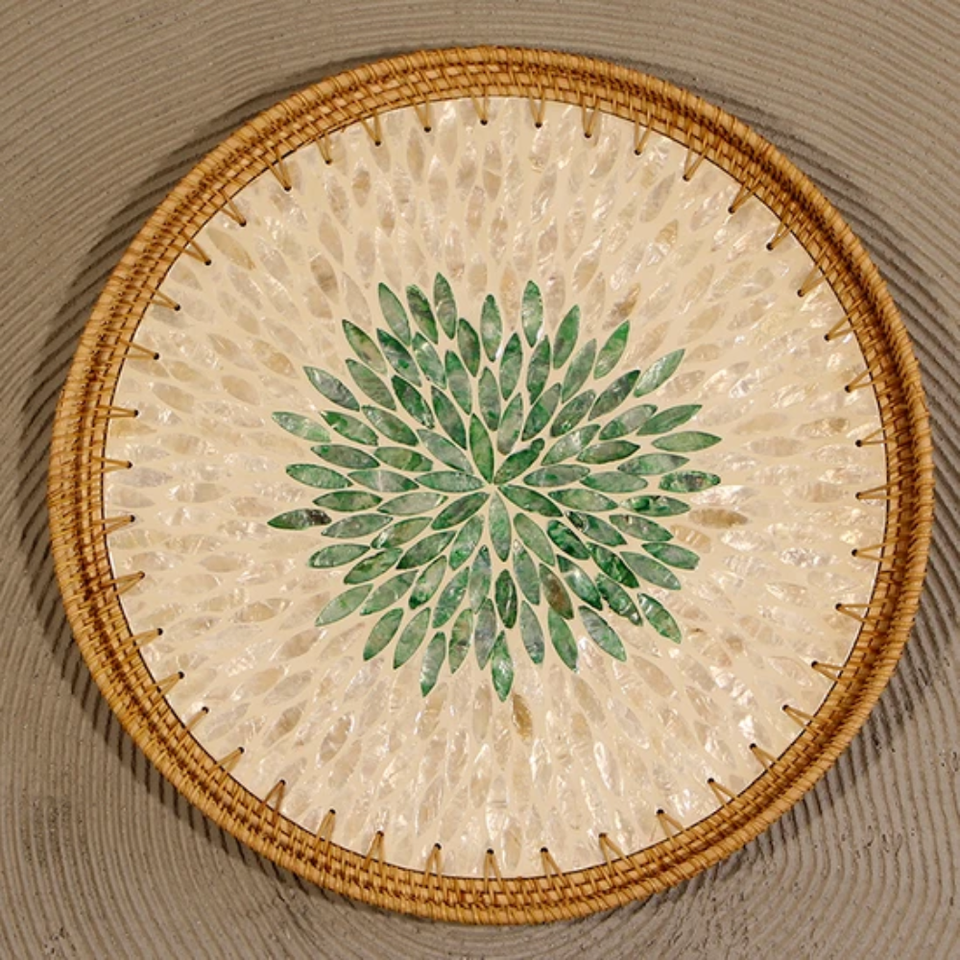 Nombre del producto:Bandeja de ratán natural con base de madera MOP