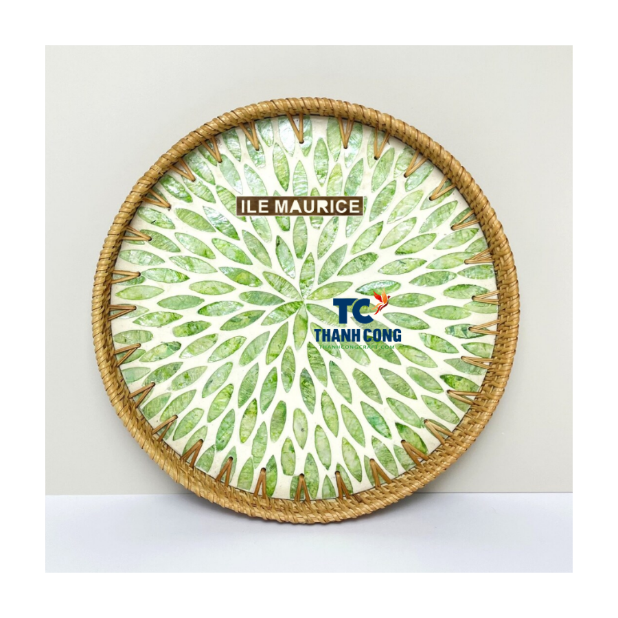 Bandeja de mimbre redonda hecha a mano de alta calidad con fregona Bandeja de servicio al por mayor Ideal para casas y resorts costeros en Mauricio