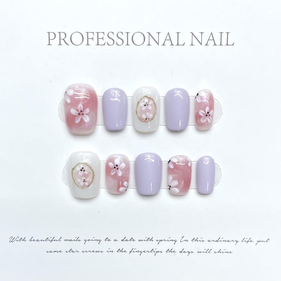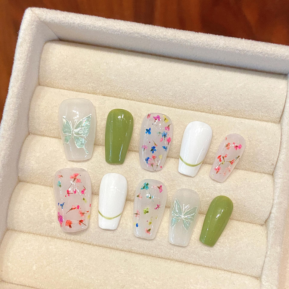 Nombre del producto:Producto de arte de uñas postizas de presión, cortas, medianas, de primavera-verano