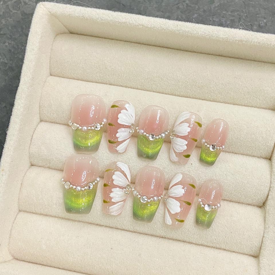 Producto de arte de uñas postizas de presión, cortas, medianas, de primavera-verano