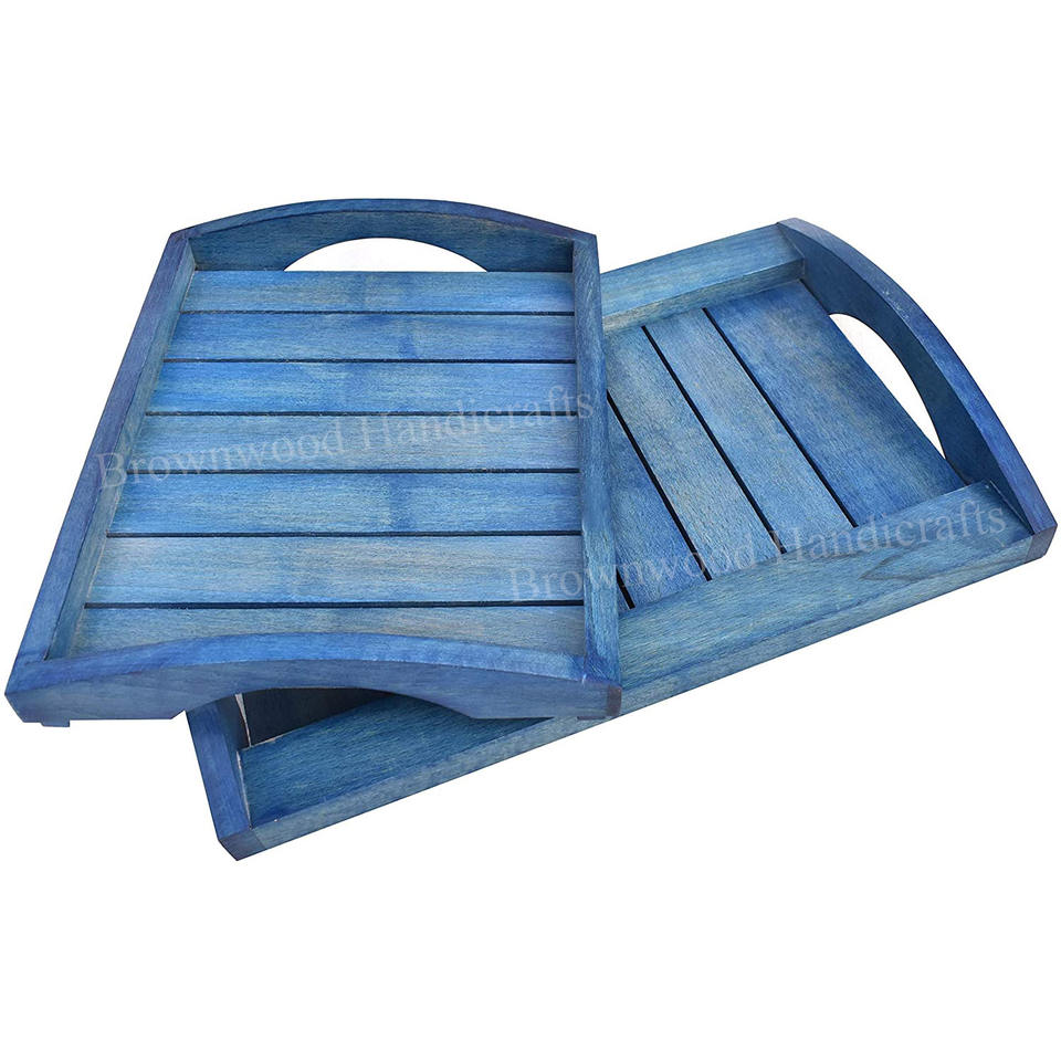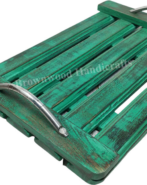 Product Name:Wooden Rectangular Serving Tray With Metal Handles