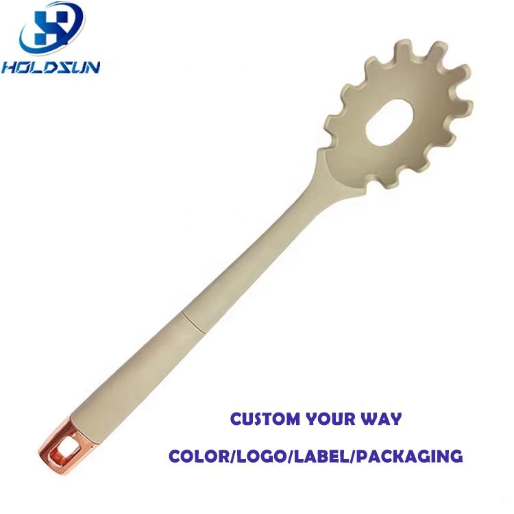 Utensilio de cocina resistente al calor de alta calidad, cuchara de silicona para servidor de espagueti, cuchara para Pasta con mango de goma