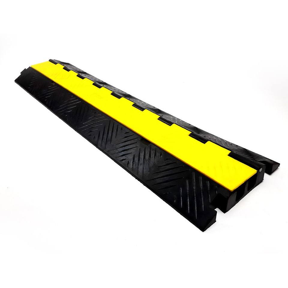 Protector de Cables de PVC de Alta Resistencia de 2 Canales, 25 x 100 x 4.5 cm, Seguridad Vial, Negro/Amarillo, Ileritraffic ILT5825
