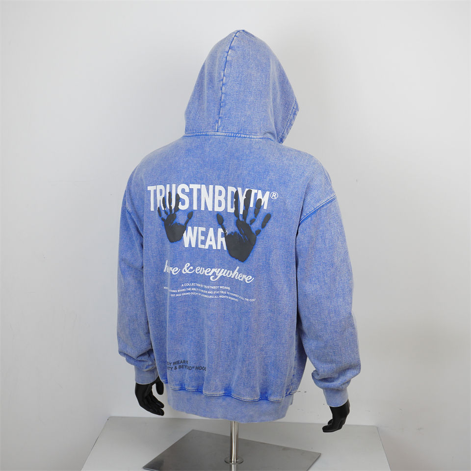 Alta calidad Heavy Weight Athletic Essentials Gym Men's Regular Sleeve Vintage Unisex Print Oversized Acid Wash Hoodie